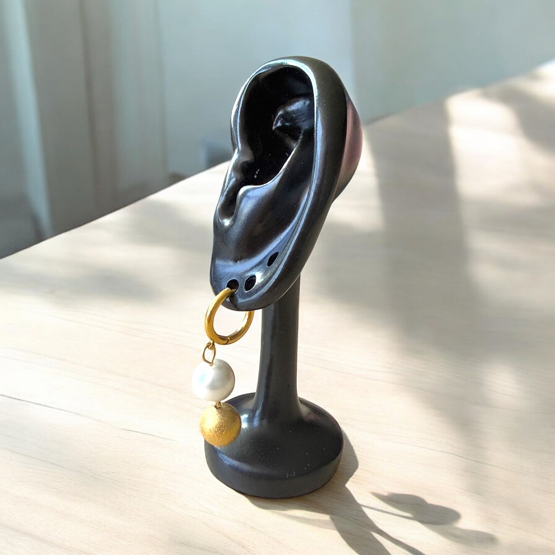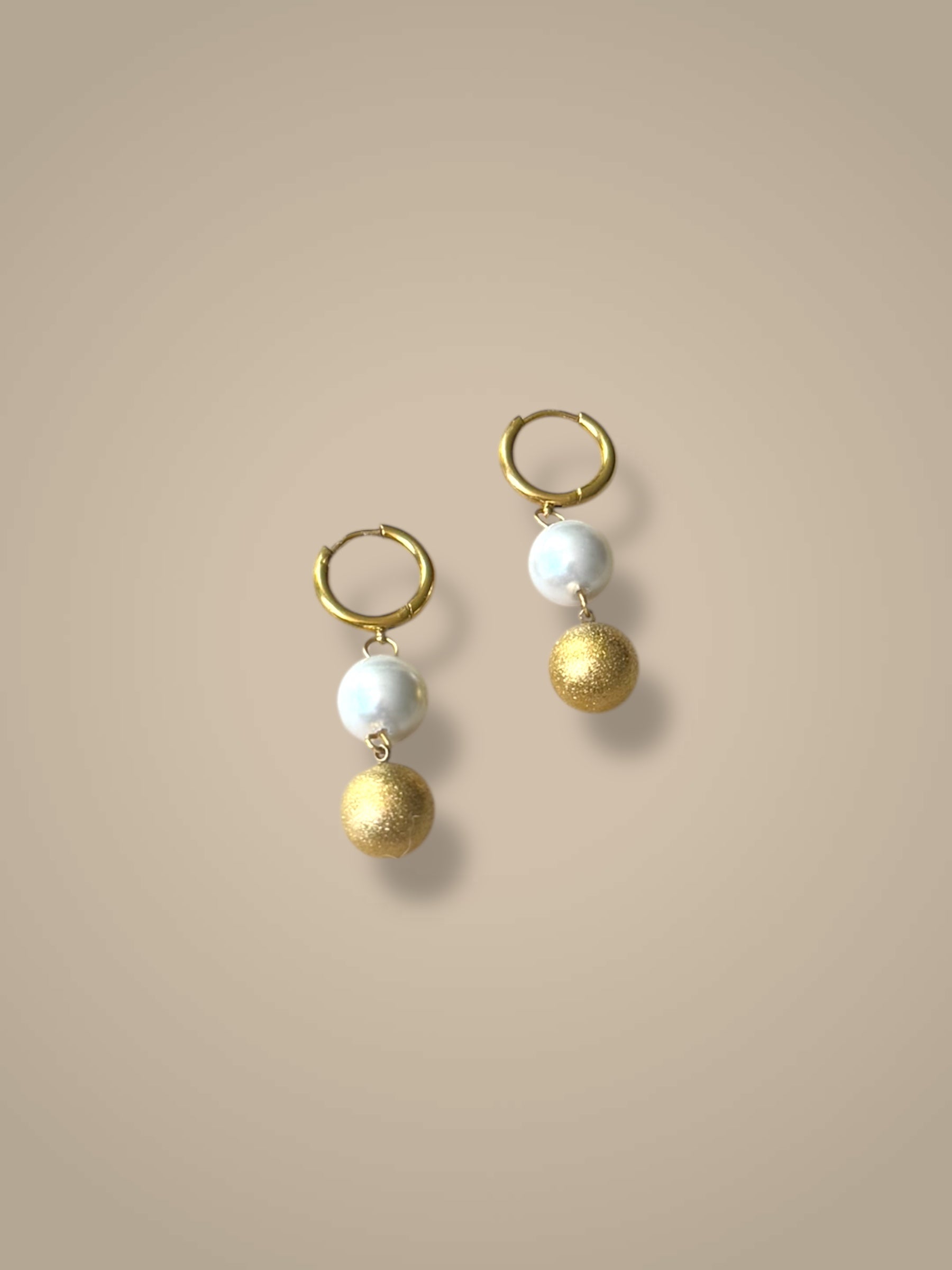 Lightweight hoops featuring a pearl orb and a matte gold globe—classic meets modern in this elegant pair.