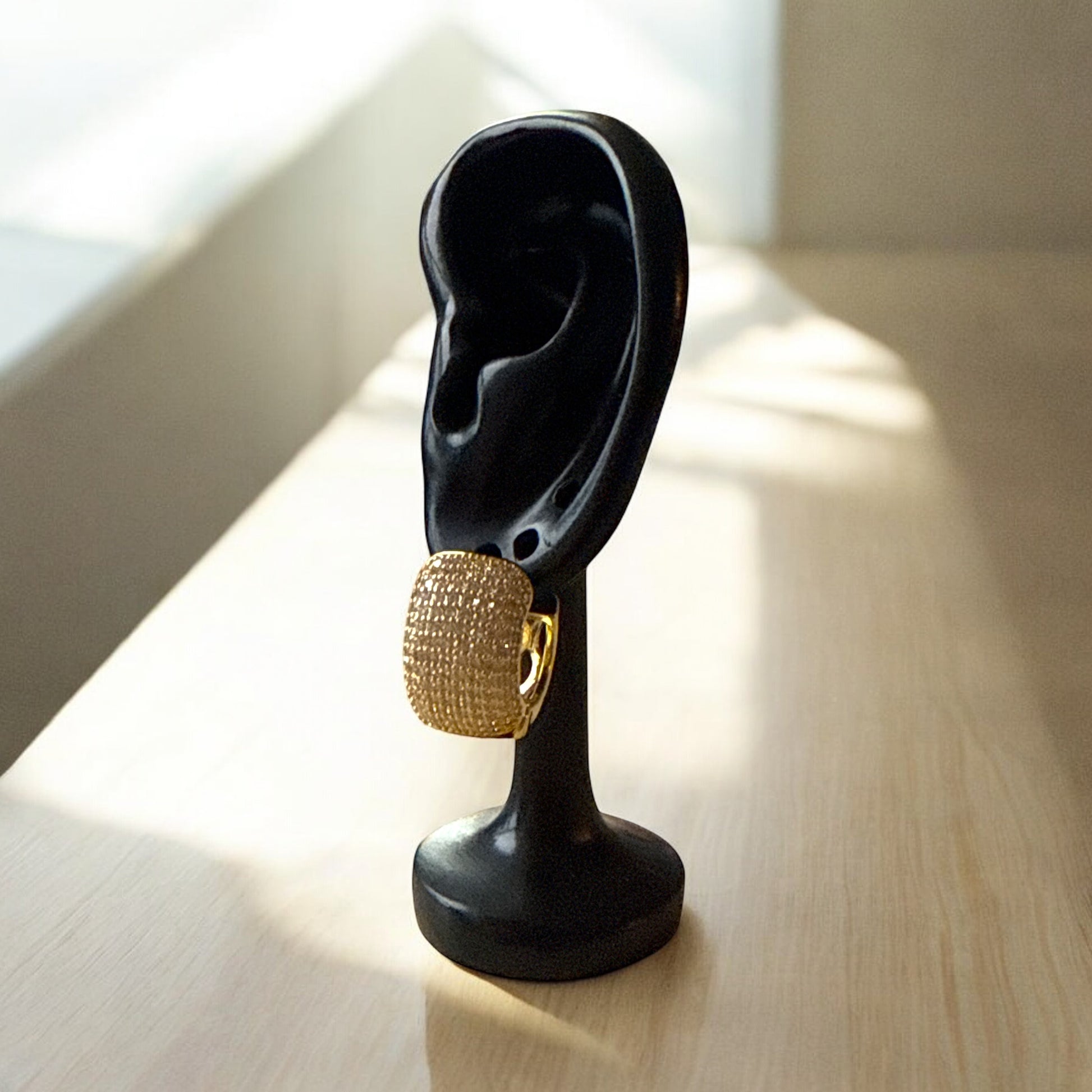 A luxurious cascade of pavé-set crystals drapes around your lobes with these statement semi hoops, radiating modern elegance and high-impact shine.