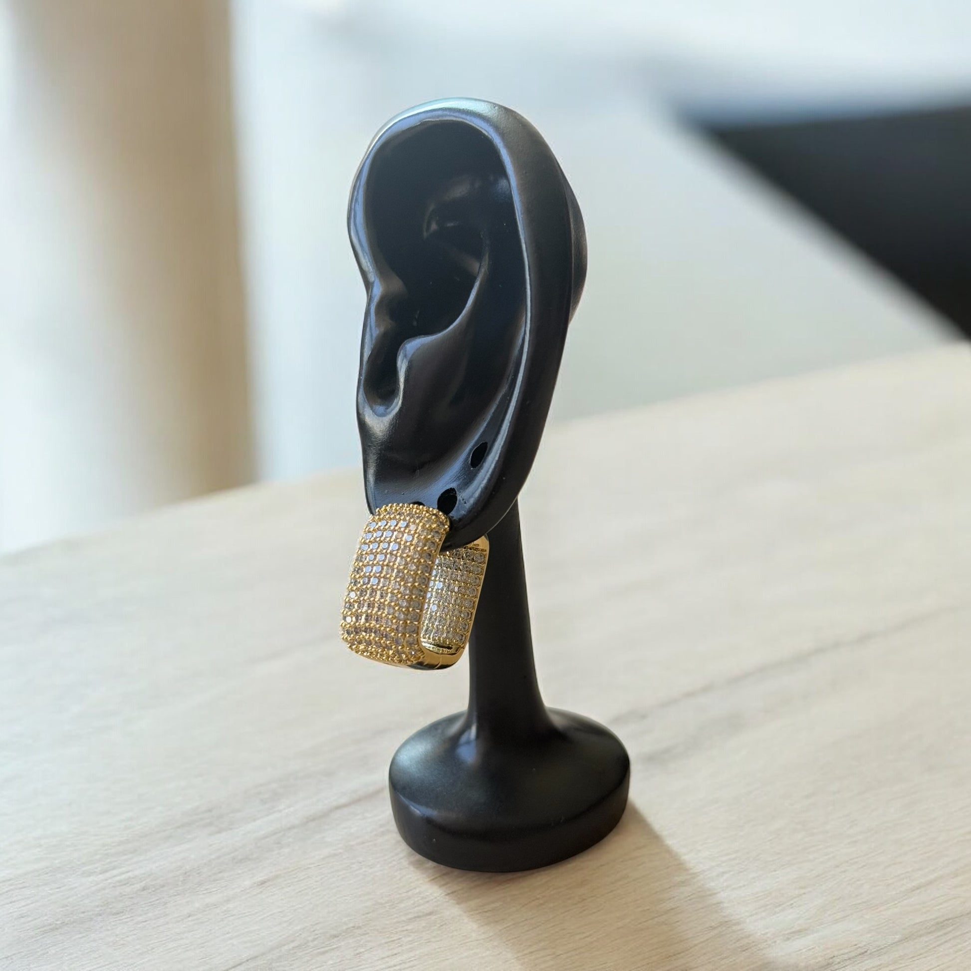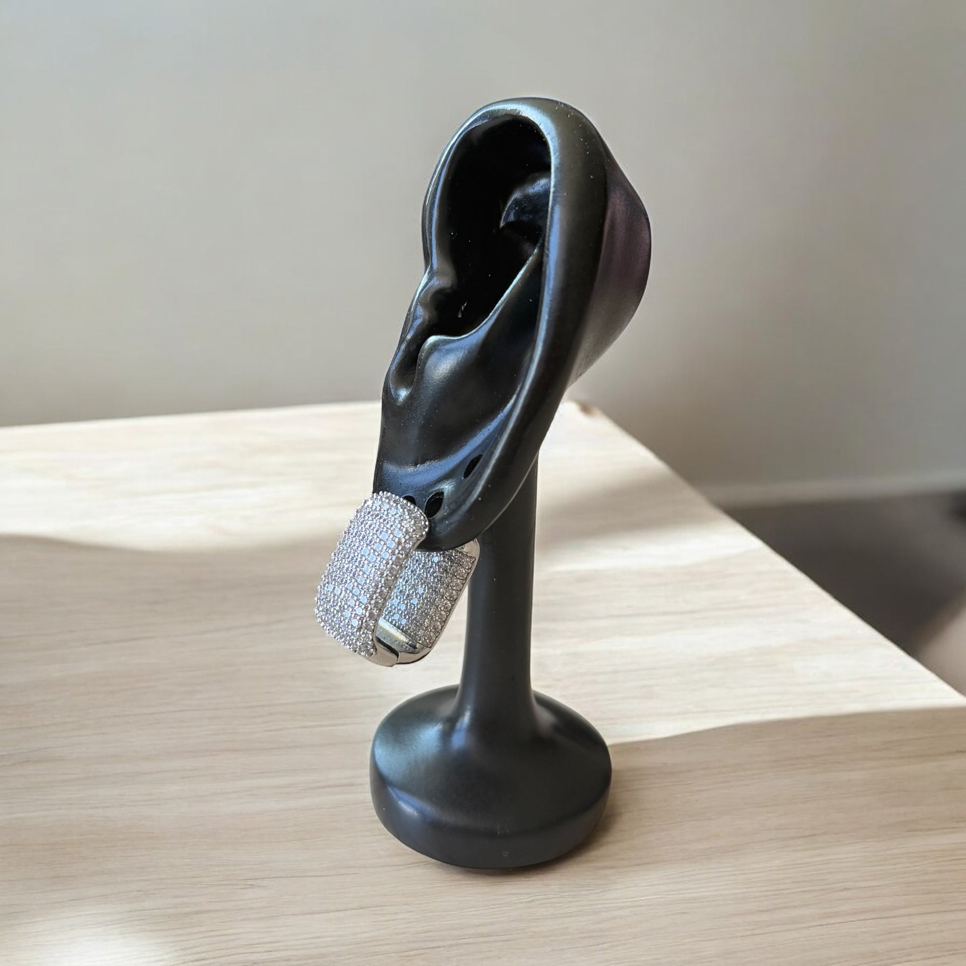A sleek U-shaped silhouette encrusted with micro zirconia for a clean, structured sparkle in silver-tone—understated luxury for the bold dresser.