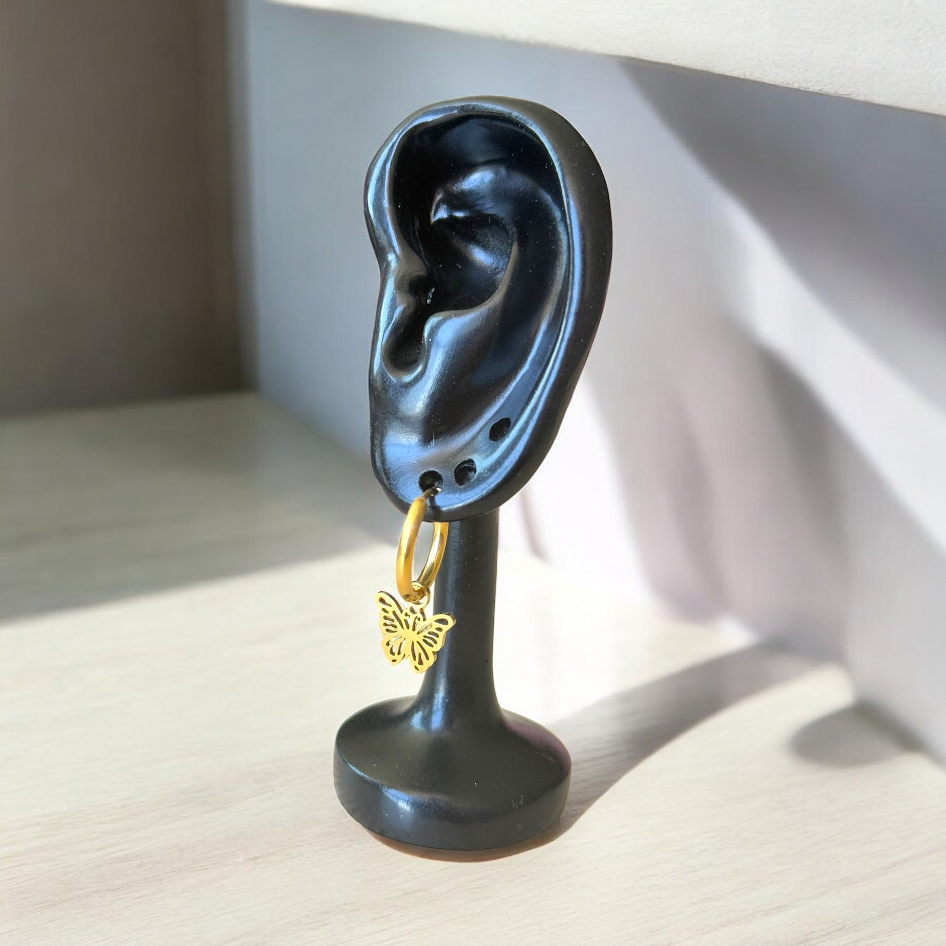 These dainty gold hoops come with detachable butterfly charms—delicate, whimsical, and endlessly wearable.