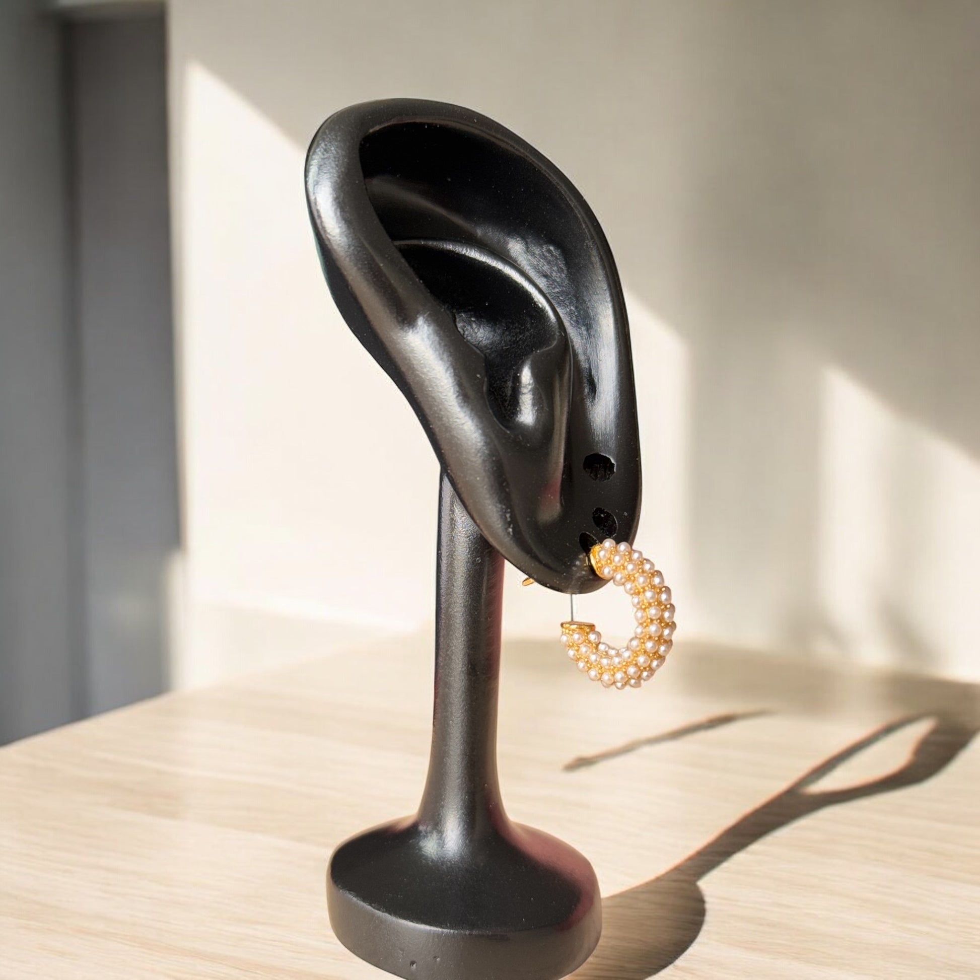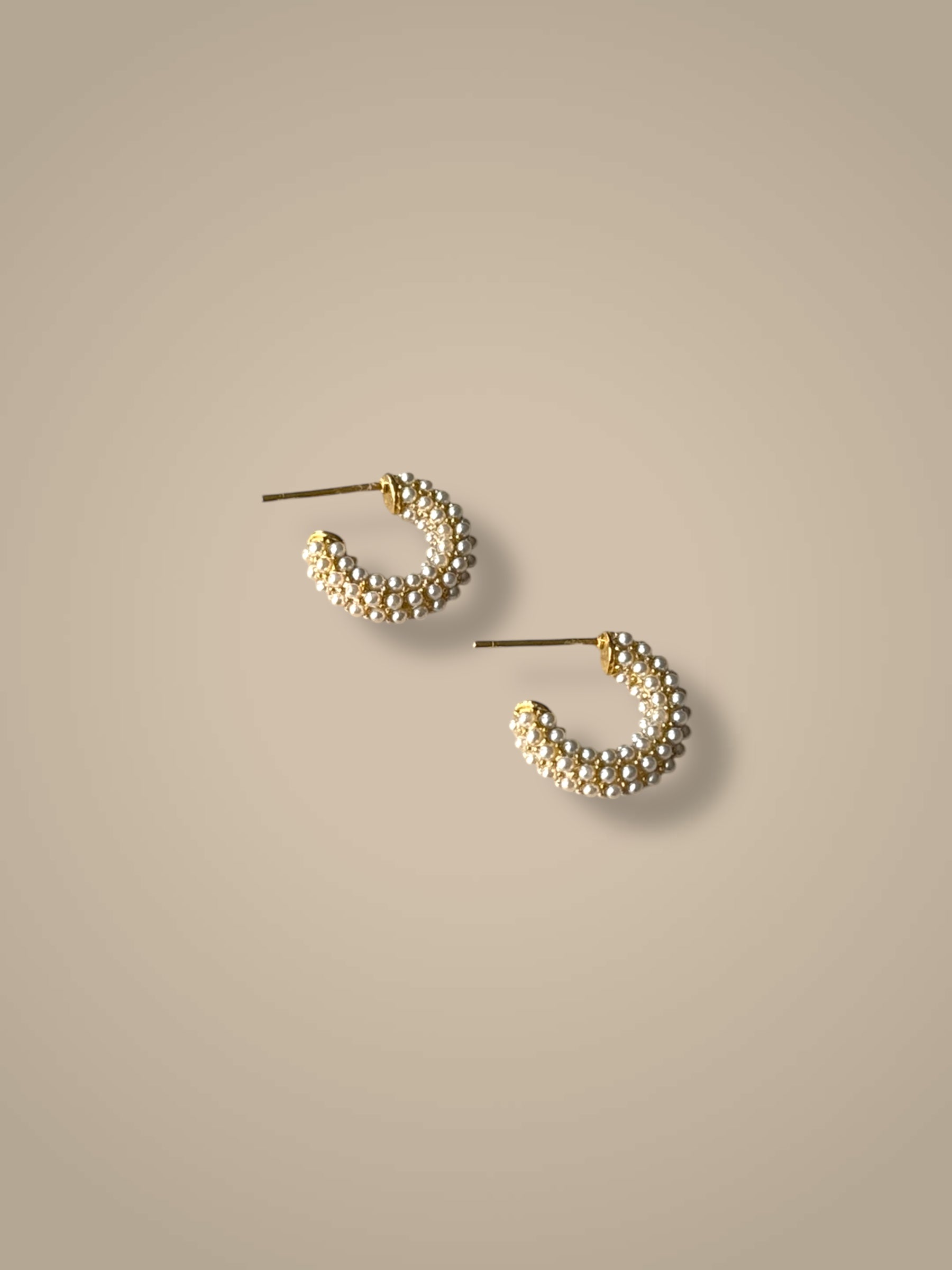 Mini hoops with a fresh take—adorned in clusters of ivory pearls for a textured, youthful edge.