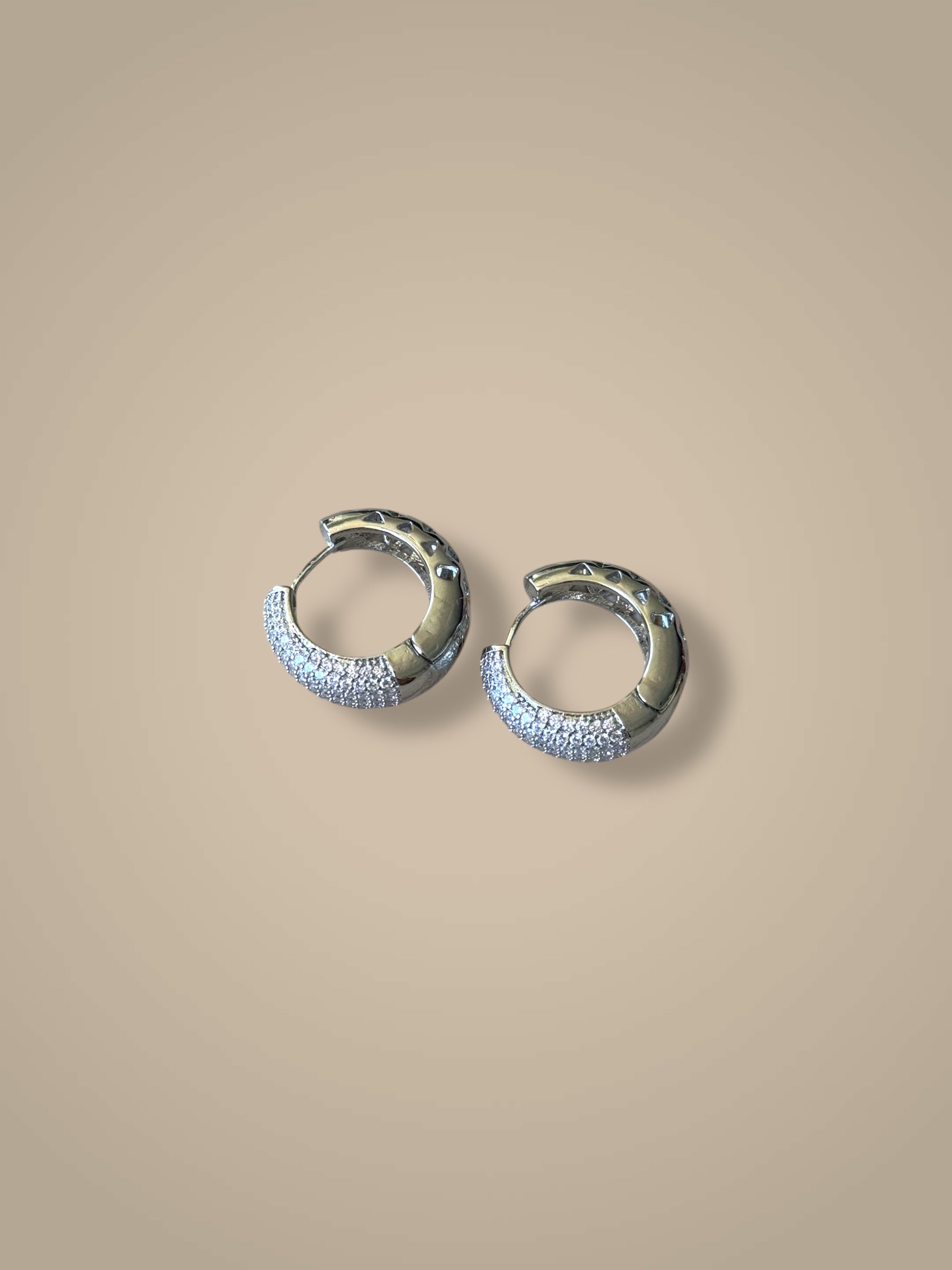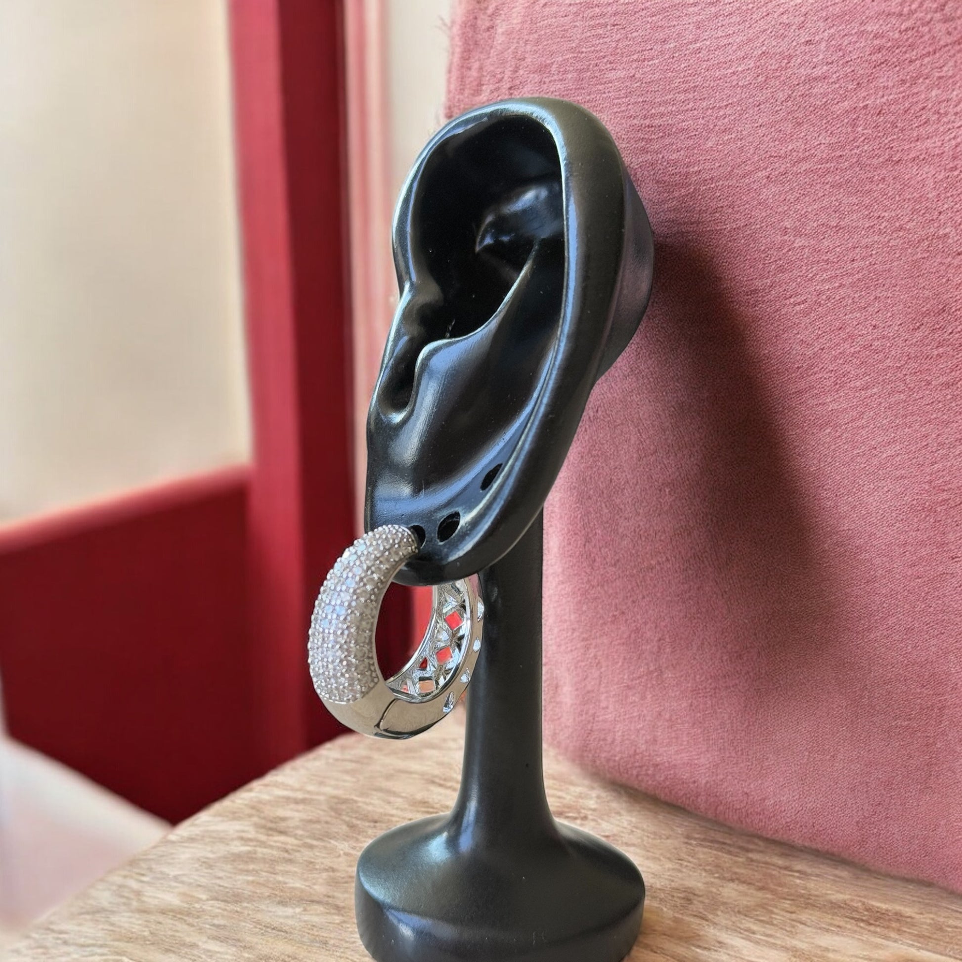 These silver-tone hoops feature textured detailing and rhinestone accents, perfect for those who love a bold yet refined look.