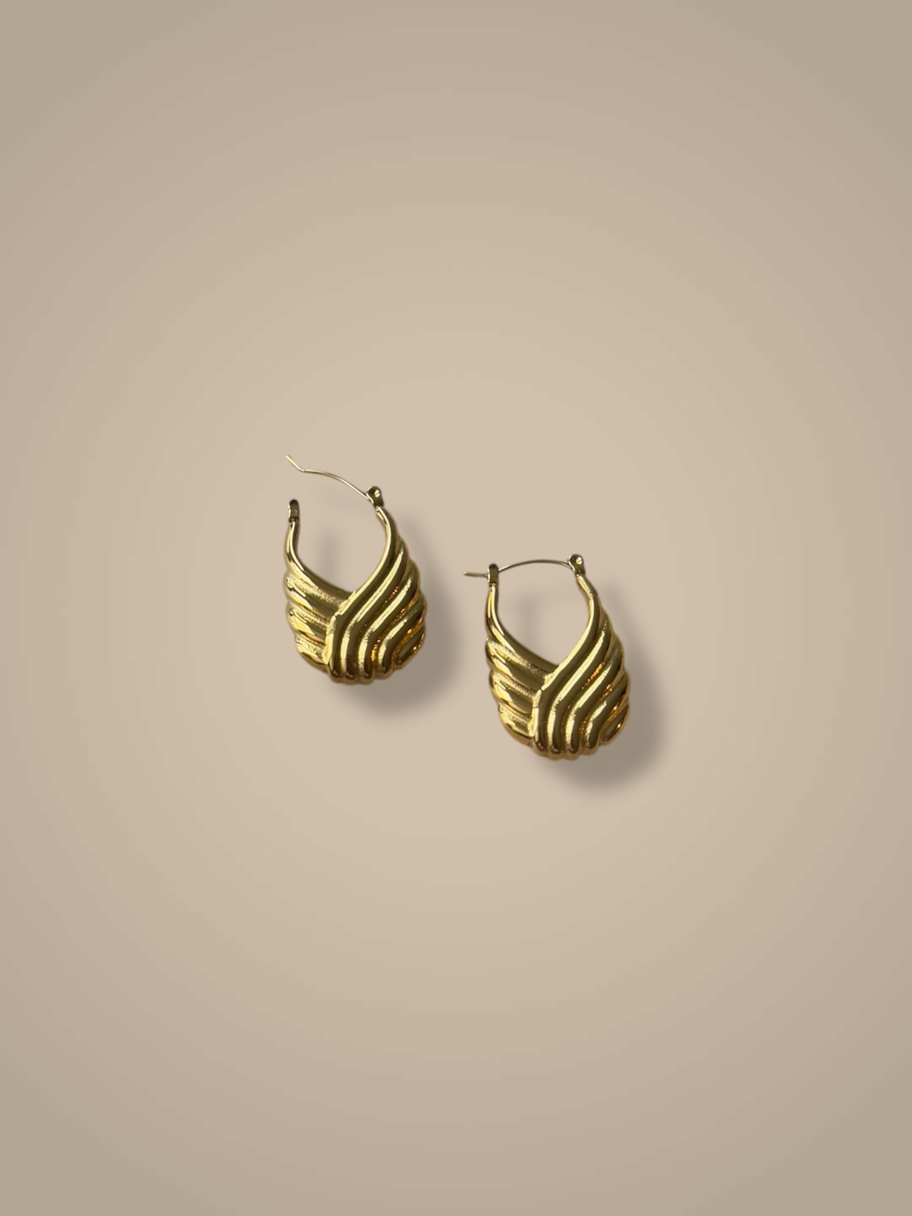 Featuring fluid folds and a layered twist, these hoops exude effortless elegance with a sculptural touch.