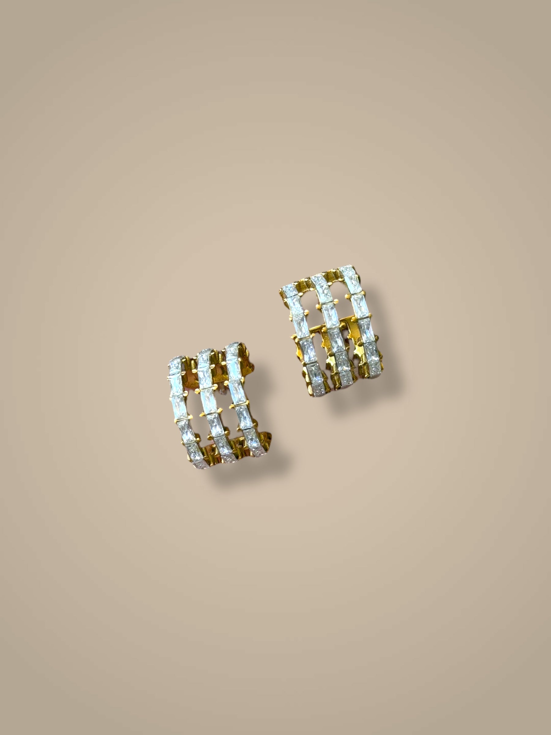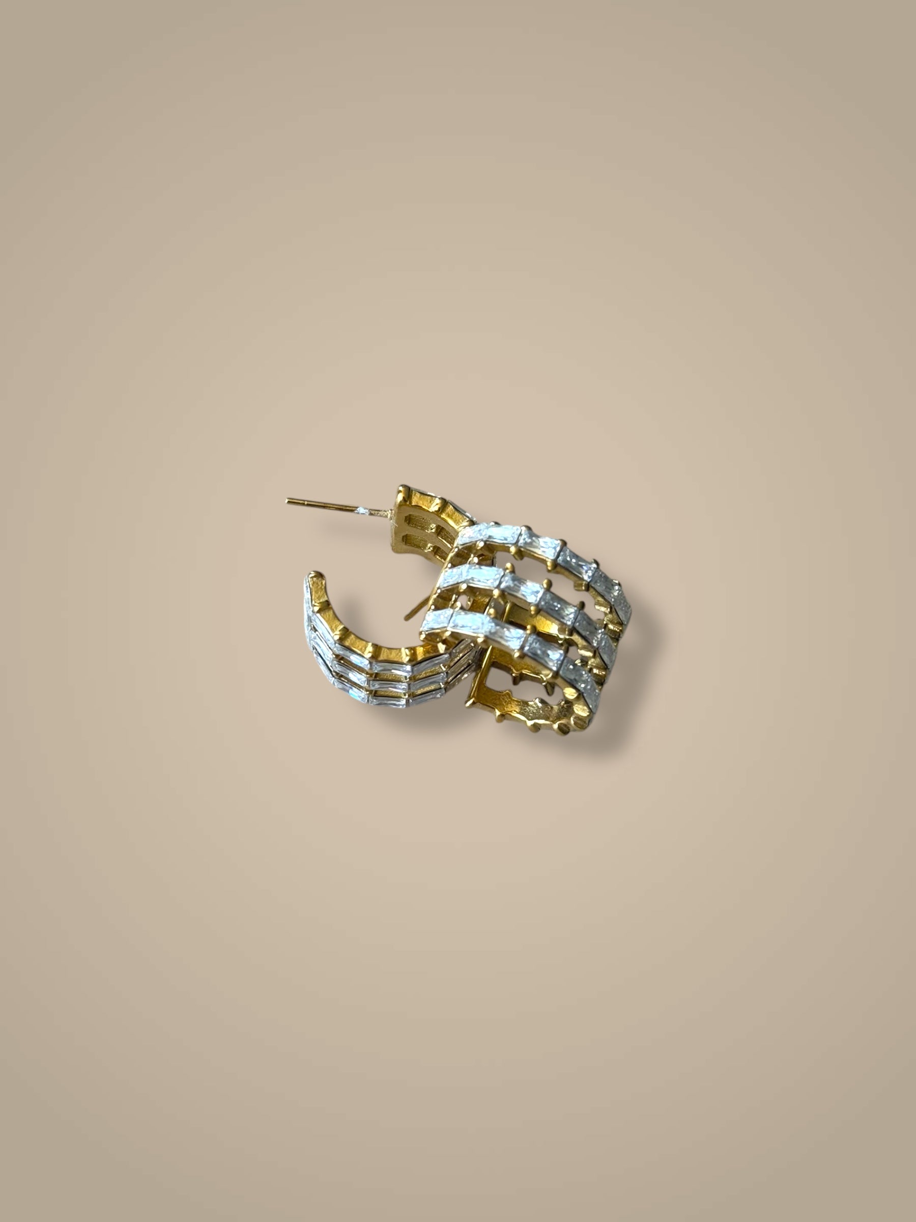 Mini yet striking, these dual-tone baguette-cut hoop earrings are a dazzling upgrade to your everyday style. Perfectly balanced between modern shimmer and Indian craftsmanship.